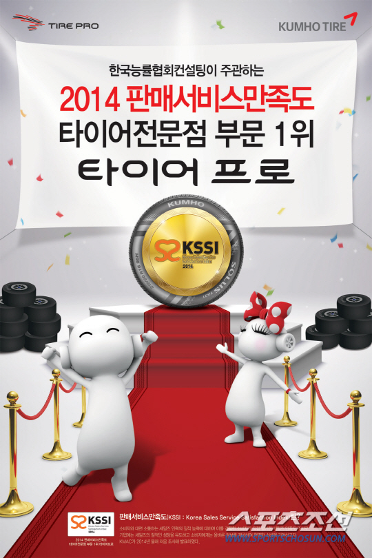 금호타이어의 타이어프로는 지난 3일 국내 최초로 실시된 한국능률협회컨설팅(KMAC) 주관 '2014 판매서비스만족도 조사'에서 타이어전문점 부문 1위를 차지하며 소비자들에게 판매서비스에 대한 품질을 인정받았다. 남정석 기자 bluesky@sportschosun.com