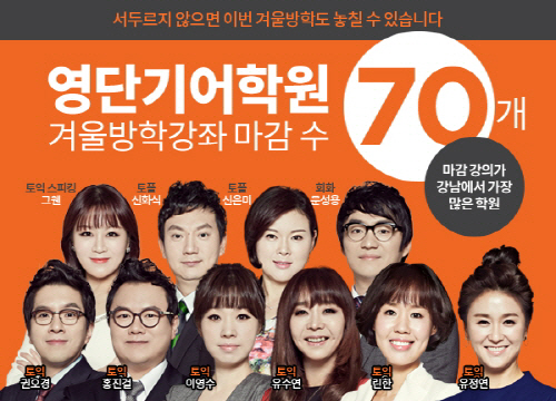 방학마다 연속 마감행진을 이어가는 '영단기 어학원'이 올 겨울방학에도 강남 일대 어학원 중 가장 많은 강좌를 마감시키며 인기를 이어가고 있다.