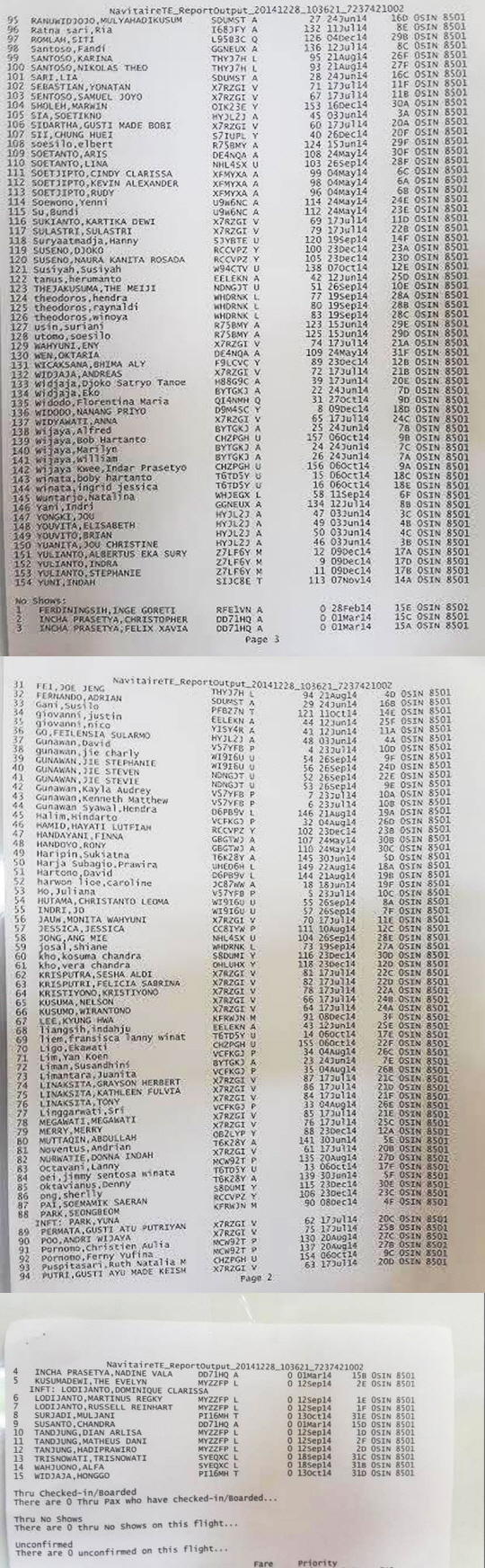 에어아시아가 한국인 3명이 포함된 실종 여객기 탑승객 162명의 명단을 공개했다.