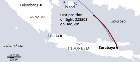 한편, 28일 인도네시아 수라바야를 이륙, 싱가폴로 향하던 실종기는 이륙 42분만인 오전 6시 17분에 교신이 두절됐다.