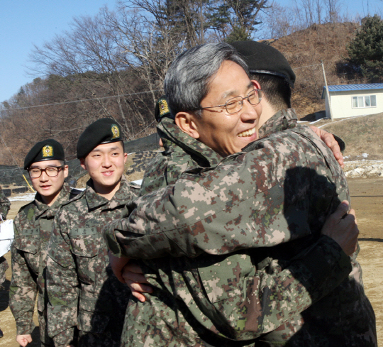 윤종규 장 겸 은행장은 과거 작전병으로 근무하던 878포병대대 생활관 및 부대시설 등을 돌아보았으며, 후임 장병들과 뜨거운 포옹을 하며 꿈과 희망의 메시지를
