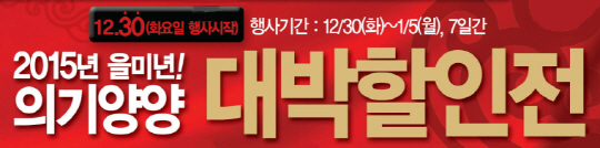 고품격 패션 아웃렛 세이브존(대표 유영길/www.savezone.co.kr)이 2015년 을미년을 맞아 다가오는 1월 5일(월)까지 '의기양양 대박할인전'을 진행한다.