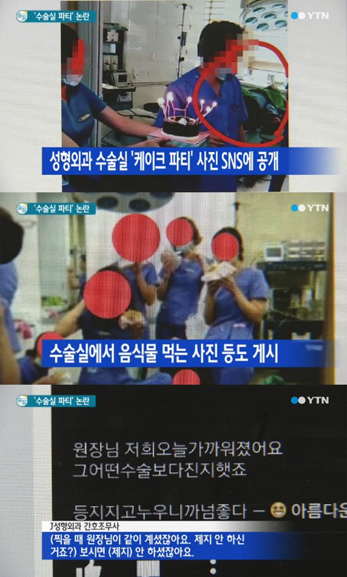 이를 본 네티즌들은 멸균이 필수인 수술실에서 일부 의료진이 벌인 몰지각한 행동에 네티즌들은 분노했다. 이에 대해 성형외과 관계자는 "음식물 반입하는 것 자체가 잘못된 행동이라는 것을 우리가 인지하고 있다. 앞으로는 더욱 그 부분을 감시하고 절대 없도록 하겠다"고 밝혔다.
