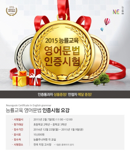 교육서비스 전문기업 NE 능률(능률교육, 대표 황도순)이 전국 초중등생을 대상으로 '2015 능률교육 영어문법 인증시험'을 개최한다.