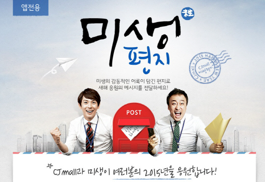 이번 프로모션은 드라마 '미생'과 연계해 진행하는 것으로, '미생'의 감동어록과 주요장면을 담은 편지를 통해 2014년 고생스러웠던 기억은 떨쳐버리고 새로운 한 해를 함께 응원하자는 취지에서 마련됐다. '더할 나위 없었다. YES!', '당신의 힘을 보여줘!', '버텨라. 꼭 이겨라!'와 같이 힘이 되는 명대사와 명장면 스틸컷을 개인 메시지와 함께 편지로 만들어 카카오톡으로 보낼 수 있다. CJ몰 앱 이벤트 페이지를 통해서 참여할 수 있다.