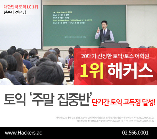 해커스어학원(www.Hackers.co.kr)의 주말 토익종합반 인기가 높아지고 있다.
