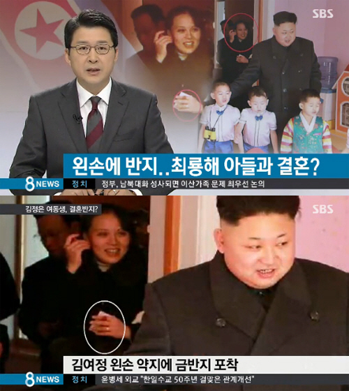 이 사진으로 김여정의 결혼설이 다시 제기됐다. 김여정은 지난해 3월 김정은 제1위원장 부부와 모란봉악단 공연을 관람할 당시에는 반지를 끼지 않고 있었다.