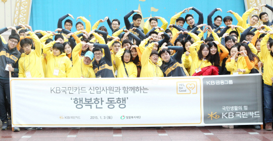 KB국민카드(www.kbcard.com / 사장 김덕수) 신입 사원 55명은 밀알복지재단과 함께 3일 서울 송파구 롯데월드에서 강남직업재활센터 근무 지적 장애인들을 위한 새해 나들이 봉사 활동을 가졌다.