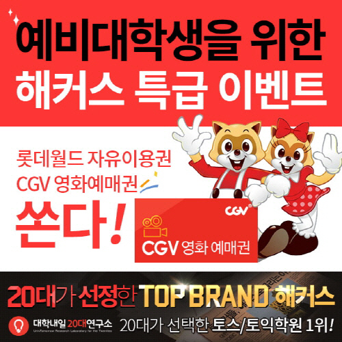 겨울방학을 맞이해 기초영어/토익/토플/텝스/스피킹 등 외국어 공부에 대한 15학번 예비대학생들의 관심이 커진 가운데, 해커스인강 챔프스터디(www.HackersIngang.com)가 오는 12일까지 '예비대학생을 위한 해커스 특급 이벤트'를 진행한다.