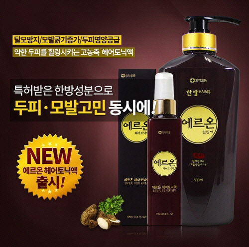 한편 에르온힐링액과 토닉은 천연물질들을 이용해 탈모를 예방할 뿐만 아니라 몸 속 독소 제거와 혈액 순환을 개선해 준다.