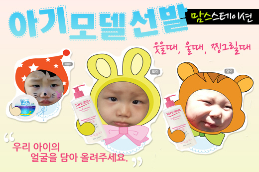 맘스스테이션 아기모델 선발대회는 매달 1일 진행되며 매월 2명을 선정하여 각각 10만원, 7만원의 맘스스테이션 쇼핑몰 이용권을 제공하며 한 달 동안 맘스스테이션 메인 모델로 활동할 수 있는 기회도 제공된다.