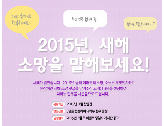 한우전문쇼핑몰 다하누몰(www.dahanoomall.com 대표 최계경)에서는 2015을미년 새해를 맞아 고객참여 댓글 이벤트를 준비했다.