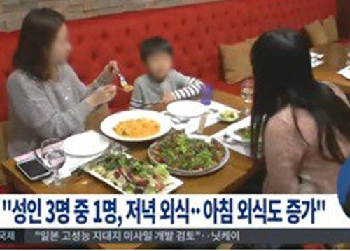 단국대학교 식품영양학과 주세영 교수팀은 1998∼2012년 국민건강영양조사의 원시 자료를 바탕으로 19세 이상 성인 5만5천718명을 분석한 결과, 저녁식사를 밖에서 사먹는 비율이 1998년 20%에서 2012년 32%로 증가했다고 밝혔다.