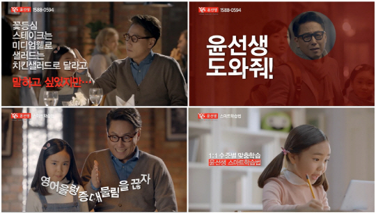 '캐스팅' 편, '레스토랑' 편으로 제작된 이번 광고는 윤선생 스마트학습법을 통해 가족의 영어울렁증 대물림을 끊자는 컨셉으로 구성됐다. 각 편 모두 실제 해외여행 중에 있을 법한 에피소드를 다뤄 소비자들의 공감대를 이끌어냈다. 특히 이번 CF는 최근 '월간 윤종신'으로 주가를 올리고 있는 윤종신과 드라마 '왔다 장보리'의 비단 역으로 사랑 받았던 김지영이 부녀 관계로 캐스팅돼 화제다.