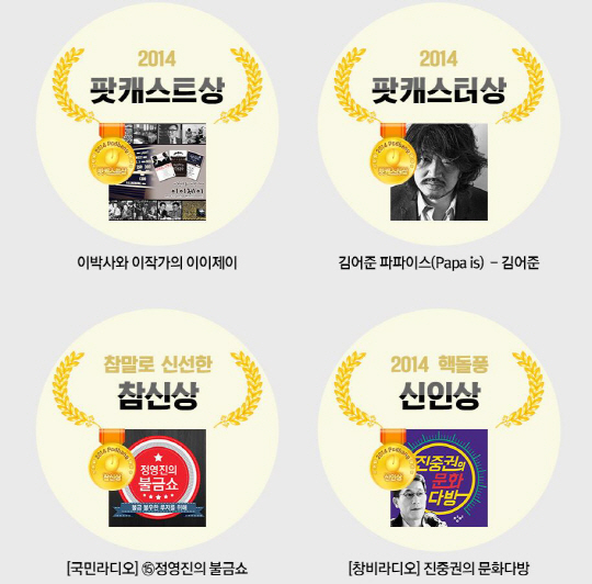 '2014 팟빵 어워드' 결과 및 방송정보는 팟빵(podbbang.com) 웹사이트를 통해 확인할 수 있다.