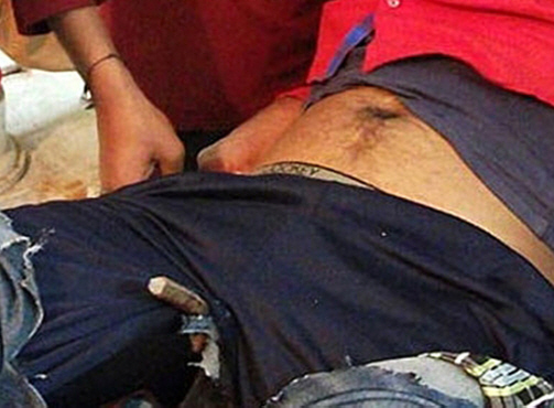 하지만 그는 운 나쁘게도 길이 60㎝짜리 쇠막대기가 항문에 박혀, 몸을 관통했다. 쇠막대기의 다른 쪽은 가랑이 사이로 빠져나왔다.