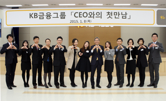 새 경영진과 1박 2일 워크샵 강행군으로 새해 첫날을 시작한 윤종규 회장 겸 은행장이 이번에는 그룹 전 계열사 직원들과의 만남 행사를 갖고 직원 자긍심 회복을