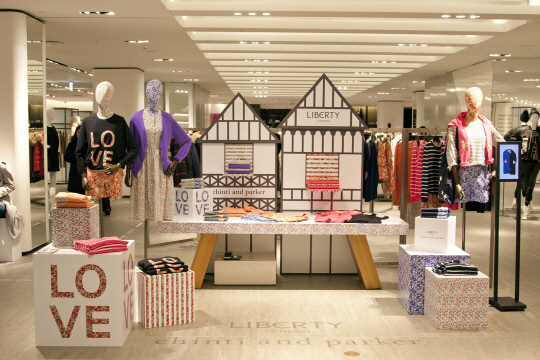 갤러리아명품관 '친틴앤파커X리버티' 팝업스토어 매장에는 이번 컬렉션의 대표 상품인 블랙 색상의 'LOVE' 니트와, 포옹과 키스를 의미하는 'XO' 모티브 등 봄을 연상시키는 색상과 프린트의 아이템이 주를 이룬다. 이 외에도 플라워 패턴의 원피스, 플라워 팬츠 등 발랄한 캐주얼 룩을 선보인다.