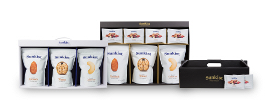 썬키스트 너츠 선물세트는 썬키스트 250 시리즈 3봉(호두, 아몬드, 캐슈너트)과 소포장 제품인 썬키스트 25 클래식 12봉 1박스 구성인 1호와 썬키스트 250 시리즈 3봉(호두, 아몬드, 캐슈너트) 1상자 구성인 2호, 그리고 썬키스트 25 클래식 소포장 30봉 1박스 구성의 3호로 총 3종이다. 생과 선물세트는 제주도산 키위로 구성된 키위세트, 제철 플로리다 자몽으로 구성된 세트와 오렌지 세트로 총 3종이다.