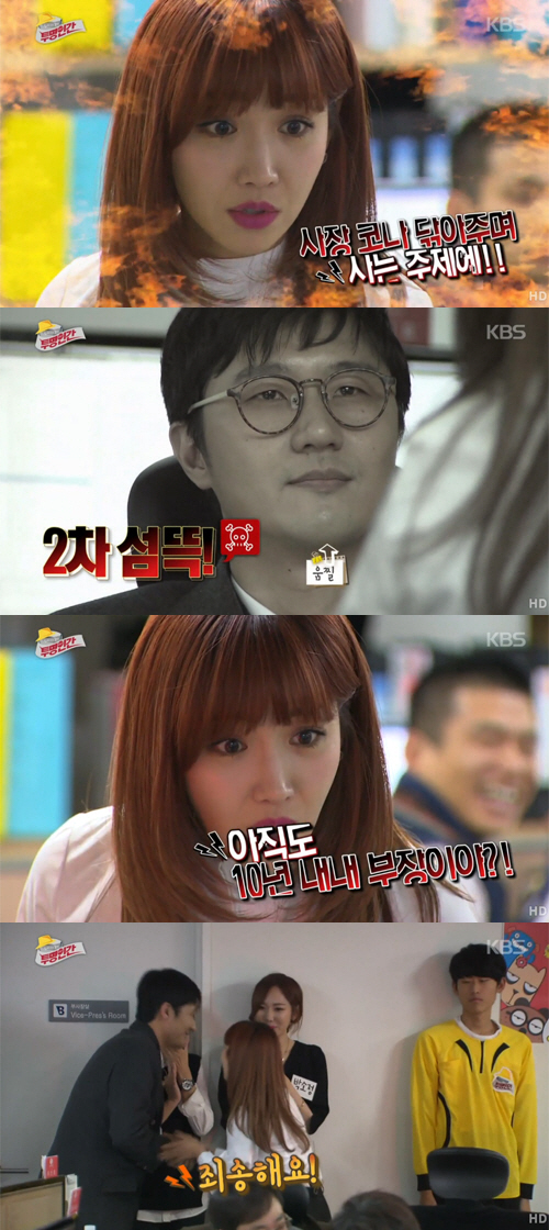 또 이유리는 상황극이 끝나자마자 남자 부장에게 달려가 "죄송하다"며 연신 사과하며 평소 모습으로 돌아와 눈길을 끌었다.