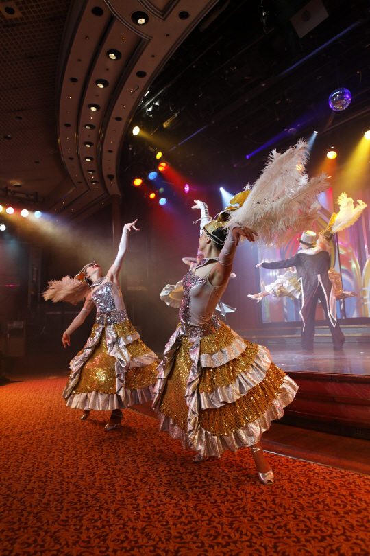저녁이면 크루즈의 하이라이트인 마술쇼와 갈라 프로덕션 쇼 등 다양한 공연이 펼쳐져 화려한 밤을 즐길 수 있다.