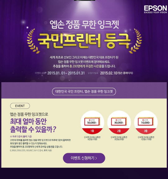 한국엡손이 1월 한 달 동안 2015년 새해맞이 이벤트를 마련했다.