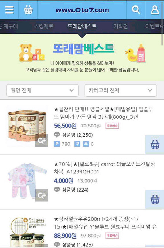 검색과 구매 용이성 외에도 최근 구매했던 리스트를 제안하는 '빠른 재구매' 서비스와 또래 엄마들이 많이 구매하는 상품을 제안하는 '또래맘베스트'는 연령별 베스트 상품 및 최다 판매 상품을 보여주고 상품 상세 정보 확인 시 고객 상품평을 함께 살펴볼 수 있도록 해 고객들에게 좋은 반응을 얻고 있다. 지난해 상반기 모바일 웹 서비스 개시 후 쇼핑몰 매출이 전년대비 14% 증가, 개시 후 모바일 접속을 통한 구매는 꾸준히 높아져 지난해 비중이 35%에 달했다.