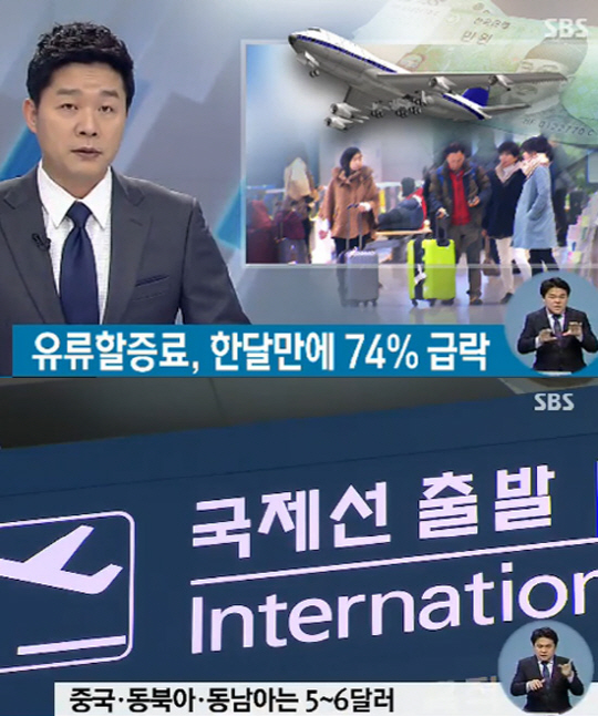 전문가들은 국제유가가 이런 속도로 계속 떨어지면, 조만간 유류할증료 자체가 붙지 않을 수도 있게 될 전망이라고 분석했다. <스포츠조선닷컴>