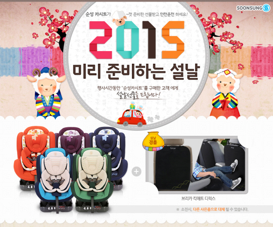 유아용 카시트 전문기업 ㈜순성산업(대표 이덕삼 www.soonsung.com)이 25일까지 종합쇼핑몰 AK몰에서 설날 기획전 '2015년 미리 준비하는 설날'을 진행한다.