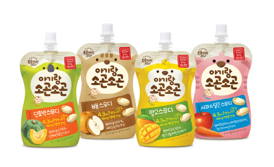 과일 가공 전문 브랜드 ㈜복음자리가 업계에서는 처음으로 유아 스무디 '아기랑 소곤소곤' 4종을 출시한다.