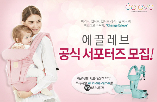 프리미엄 유아용품 전문기업 ㈜쁘띠엘린(대표 이남진, www.petitelin.com)이 아기띠 브랜드 에끌레브의 공식 서포터즈 1기를 25일까지 모집한다.