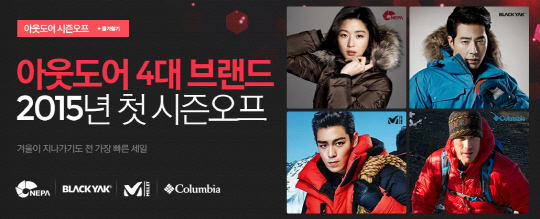 먼저, 23일 오전 10시까지 네파 브랜드데이를 진행하고 '네파 아니키아 초경량 구스다운'을 6만4900원에, '네파 포르테 트레블 구스다운'을 9만9000원에 판매한다. 이어 23일 오전 10시부터 27일 오전 10시까지는 블랙야크, 27일~30일에는 밀레, 30일~2월 3일에는 컬럼비아 브랜드데이를 진행한다. 특히 30일에는 발수력이 뛰어난 '컬럼비아 옴니쉴드자켓'을 80%할인 된 7만2000원에 제공한다. 자세한 내용은 옥션 검색창에서 '아웃도어 시즌오프'를 검색하면 확인할 수 있다.