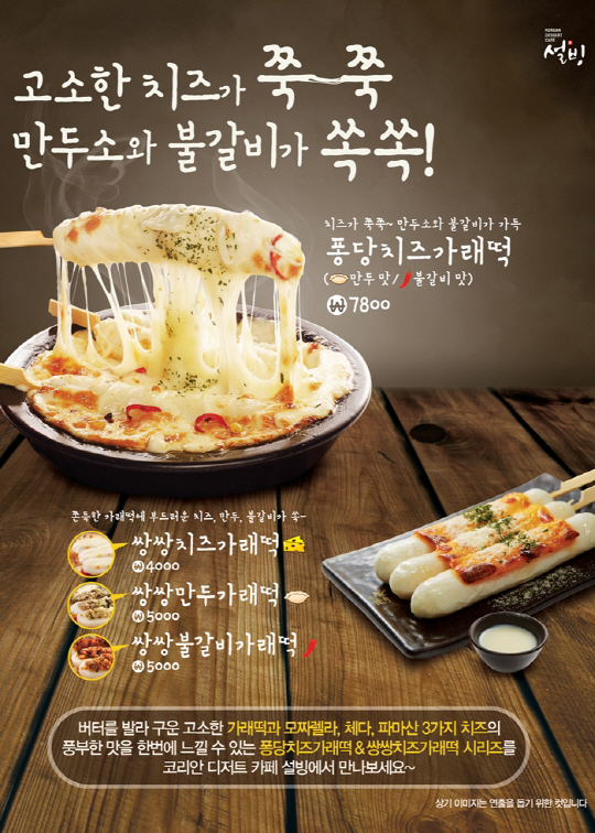 코리안 디저트 카페 설빙이 겨울을 맞아 사이드메뉴로 선보인 '쌍쌍치즈가래떡'의 뜨거운 고객호응에 힘입어 '쌍쌍 가래떡 시리즈'를 출시한다고 밝혔다.