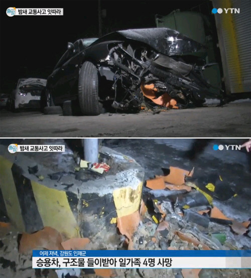 인제 승용차 사고, 일가족 목숨 앗아가…찌그러진 차량 '처참한 사고 현장'