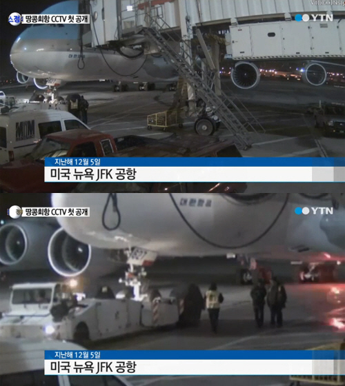 '땅콩 회항' 사건 당시 비행기가 탑승 게이트로 돌아오는 장면이 담긴 CCTV가 첫 공개됐다.