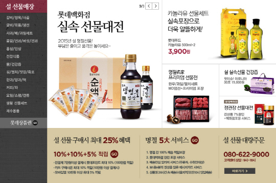 롯데백화점 공식 온라인몰 엘롯데(www.ellotte.com)역시 설 명절관을 통해 백화점의 프리미엄 상품을 실속 있는 가격에 소개하고 5만원이상 결제 시 롯데포인트 최대 10% 적립 등의 혜택을 제공한다.