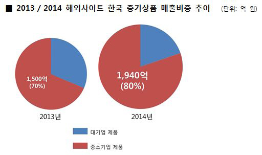 CJ오쇼핑이 지난 해 중국, 인도, 일본, 태국 등 해외 7개국 9개 지역에서 운영 중인 홈쇼핑 합자법인의 판매 실적을 분석한 결과 한국상품 취급고가 2013년 대비 약 10% 증가한 2420억 원을 기록한 것으로 나타났다. 이 중 중소기업 상품 비중은 80%인 1,940억 원으로, 이는 지난 2013년 1500억 원에 비해 30%나 증가한 수치다.