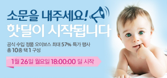 CJ몰은 오는 26일(월) 오후 6시부터 총 30시간 동안 <오이보스 핫 딜> 이벤트를 열고 오이보스 베이비라인 보습 상품을 최대 59% 할인된 가격에 선보인다. 이번 이벤트에서는 독일 약사회가 추천하는 오이보스 대표 상품으로 구성된 '베이비 보습 4종 세트'를 포함해 총 10가지의 오이보스 상품을 특별가에 만나볼 수 있다.