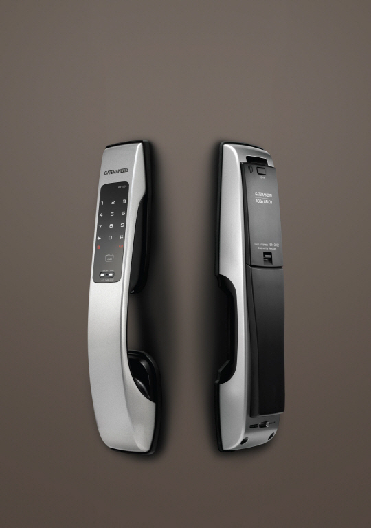 아이레보 '게이트맨와이드'는 주키 13종, 보조키 17종의 다양한 라인업으로 출시한다. 올해는 주키 5종, 보조키 5종 등 다양한 디자인과 가격의 제품을 지속적으로 선보일 계획이다. 주요 제품으로는 3월 출시 예정인 푸시풀타입의 '게이트맨와이드 WX100'다. WX-100은 안에서는 밀고(푸시), 밖에서는 당기는(풀) 푸시풀 디지털도어록이다. 푸시풀도어록은 사용자가 위급 시 빠르게 탈출할 수 있는 엑시트바를 가정용으로 개발한 것으로 아이레보는 이를 가정용에 적용하기 위해 손잡이를 최대한 크게 디자인했다.