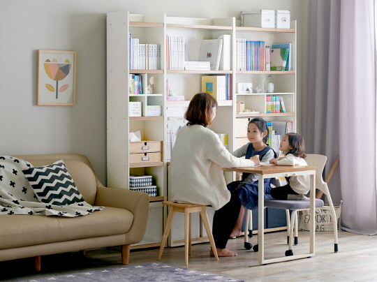 한샘몰 초등학생용 가구 신제품 '모리(mori)'는 형태가 변해(modify) 사용자에게 혁신(renovation)을 제공하는 가구라는 이름 그대로 책장 2개, 책상 1개의 단순한 구성으로 다양한 플랜을 제안하며 이 같은 고민을 해결한다.