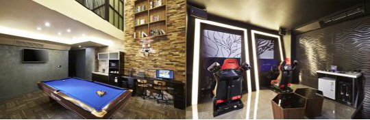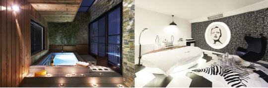이밖에 180인치 대형 화면에서 영화와 노래방을 함께 즐길 수 있는 멀티스위트룸(주중 40만원/주말 50만원)과 돔형 형태의 공간에 원형침대로 이뤄진 오리엔탈스위트룸(주중 15만원/주말 18만원), 일반 객실고객을 위한 디럭스룸(주중 13만원/주말 15만원) 등 다양한 형태의 객실이 마련돼 있어서 고객의 오감을 만족시킨다.