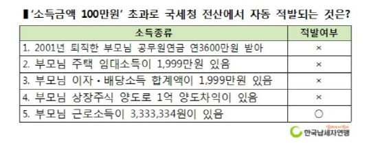 납세자연맹은 "이런 세법의 불합리함은 근로소득이나 사업소득 등 일해서 얻는 '소득금액 100만원 기준'이 너무 낮은 반면 '자본소득'은 비과세나 분리과세 특례로 이런 기준 자체를 적용하지 않기 때문"이라고 진단했다.