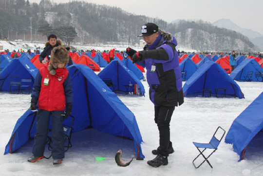 지난 25일 가족과 함께 평창군 진부면 오대천에서 열리고 있는 평창송어축제 현장을 방문한 염경환씨는 얼음낚시와 송어 맨손잡기에 참여해 짧은 시간에 많은 송어를 낚아 눈길을 끌었다.