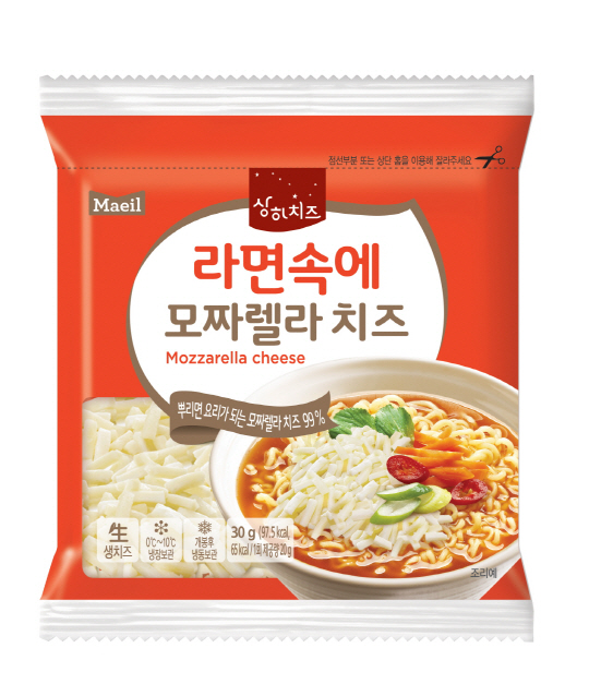 '즉석식품에 뿌리면 요리가 된다'라는 컨셉트로 선보인 '라면속에 모짜렐라 치즈'는 99% 모짜렐라 자연치즈로, 쭉쭉 늘어나는 성질이 뛰어나 라면 속에 넣었을 때 쫄깃한 식감과 부드러운 풍미를 즐길 수 있다. 또한 우유 고유의 향을 상하치즈의 질소 충진 기술로 잡아 치즈 고유의 맛이 살아있는 것이 특징이다. 1회용 조리에 적합한 30g의 슈레드 타입으로 선보여 출시 직후부터 편의점 즉석식품을 즐기는 모디슈머와 싱글족들에게 큰 호응을 얻고 있다.