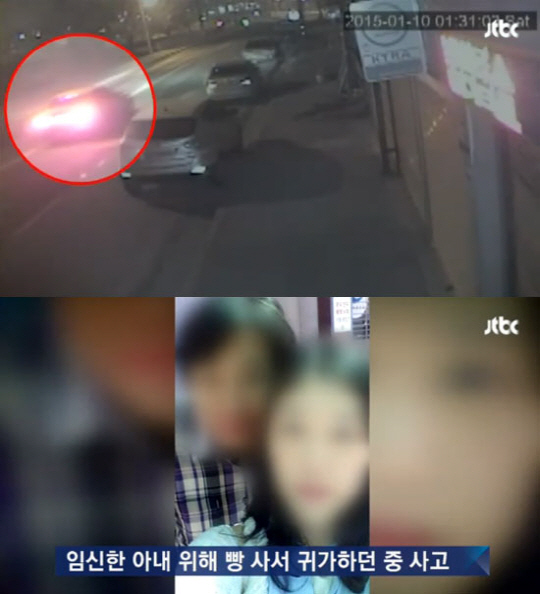 임신한 부인을 위해 크림빵을 사서 집에 가던 남편이 뺑소니 사고로 숨진 안타까운 사연이 공개된 가운데, SNS를 통해 용의 차량으로 추정되는 CCTV 영상이 확산되고 있다.