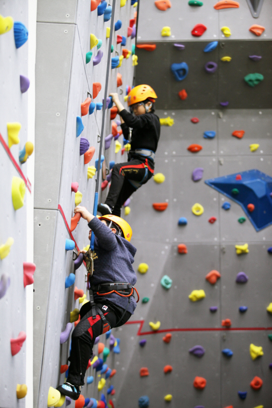 설연휴와 봄방학이 기다리는 2월, 겨울의 끝자락 가족이 함께 떠나는 여행지로 박물관-미술관 기행도 무난하다. 사진은 속초 국립산악박물관에서 어린이 관람객이 암벽체험을 하고 있는 모습.