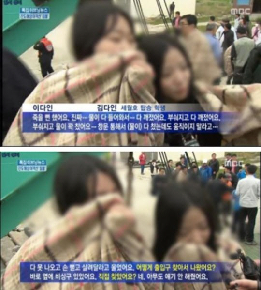 세월호 침몰 순간까지 구조 활동에 몸을 사리지 않아 '파란 바지의 구조 영웅'으로 알려진 김동수 씨는 "밤마다 나를 죽이려고 누가 쫓아오는 꿈을 꿔서 아내에게 밤이 오지 않았으면 좋겠다는 말을 하기도 했다"며 "난 다시 그 상황에서도 아이들을 끝까지 구할 것이다. 하지만 그 일로 내가 아무것도 할 수 없게 됐기 때문에 교통사고로 허리를 다친 아내가 일을 하고 고 3이 되는 딸이 아르바이트를 해야 한다. 살아남은 것이 죄가 되느냐"고 흐느꼈다.