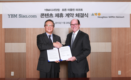 YBM시사닷컴이 미국 교육 출판사 '호튼 미플린 하코트'와 콘텐츠 제휴 계약을 체결했다. 사진제공=YBM시사닷컴