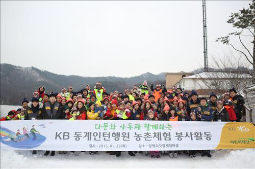 KB국민은행(은행장 윤종규/www.kbstar.com)은 사단법인 초록우산 어린이재단(대표자 이제훈) 과 함께 29일 경기도 양평군 청운면 신론리 일대에서 동계 인턴행원 봉사활동을 실시하였다.