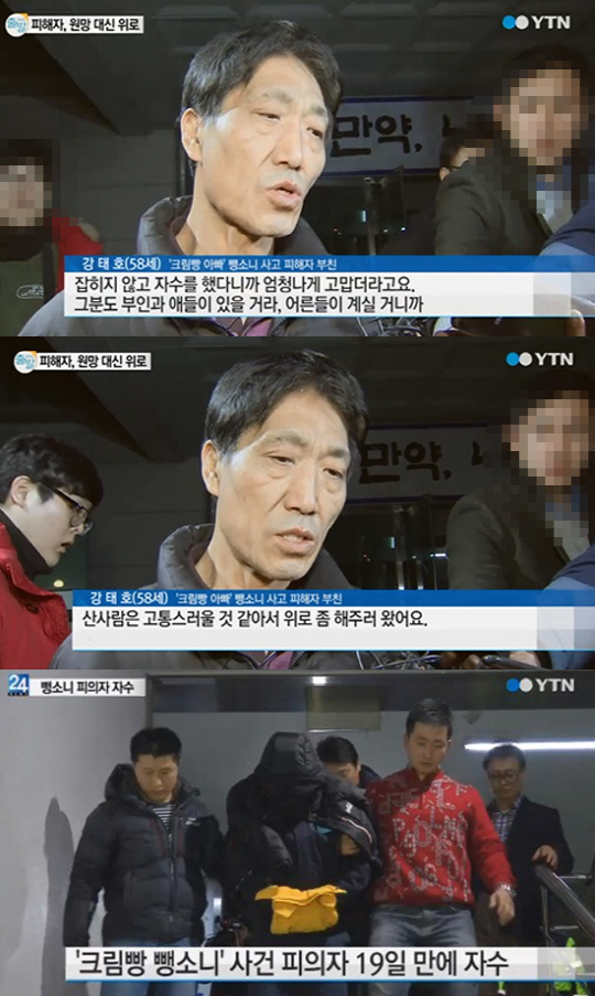 특히 크림빵 뺑소니 용의자 자수 소식에 피해자 강모씨 아버지 강태호(58)씨는 자신의 아들을 사망케 한 피의자를 향해 "가족이 너무나 고마워했다"고 말하며 분노나 원망하는 모습 대신 용서의 손을 건넸다.